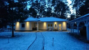 Pünktlich mit Ablauf der vereinbarten 6 Monate Bauzeit wurde ein neues Einfamilienhaus fertiggestellt. Der geräumige 120 m² Bungalow mit Außenanlagen und gehobener Ausstattung stellt das 200. Haus dar.